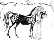 Успокоилась Кырмыза, вернулась в хоромы и кое-как выждала до следующего вечера, когда змей велел ей в путь собираться. Быстренько взяла она меру, наполнила ее полыхающими углями и понесла Гэитану. Волшебный конь мигом съел все угли. Затем она надела на него узду золотую с серебряными удилами. И вот сел змей на льва верхом, а Кырмыза на Гэитана — волшебного коня, и отправились они в дорогу. Невеста все отстает от змея на три шага. А тот все оборачивается да спрашивает:
